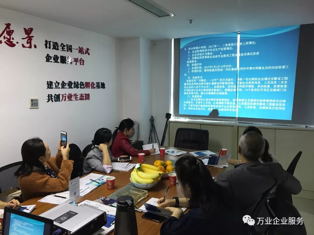 2018年第三季度數(shù)據(jù)上報工作已經(jīng)開始,萬業(yè)公司為各位建筑企業(yè)量身打造的"資質(zhì)維護(hù)及稅籌培訓(xùn)指導(dǎo)講座” 提供每家企業(yè)超受用的指導(dǎo)方案!于10月12日下午,安徽萬業(yè)企業(yè)管理有限公司成功舉辦第三季度資質(zhì)動態(tài)維護(hù)座談會!會議邀請了合肥建筑行業(yè)同仁,分享大家最關(guān)心的問題:資質(zhì)日常維護(hù)如何做?動態(tài)審核重點在哪里?怎樣合理規(guī)劃稅籌?