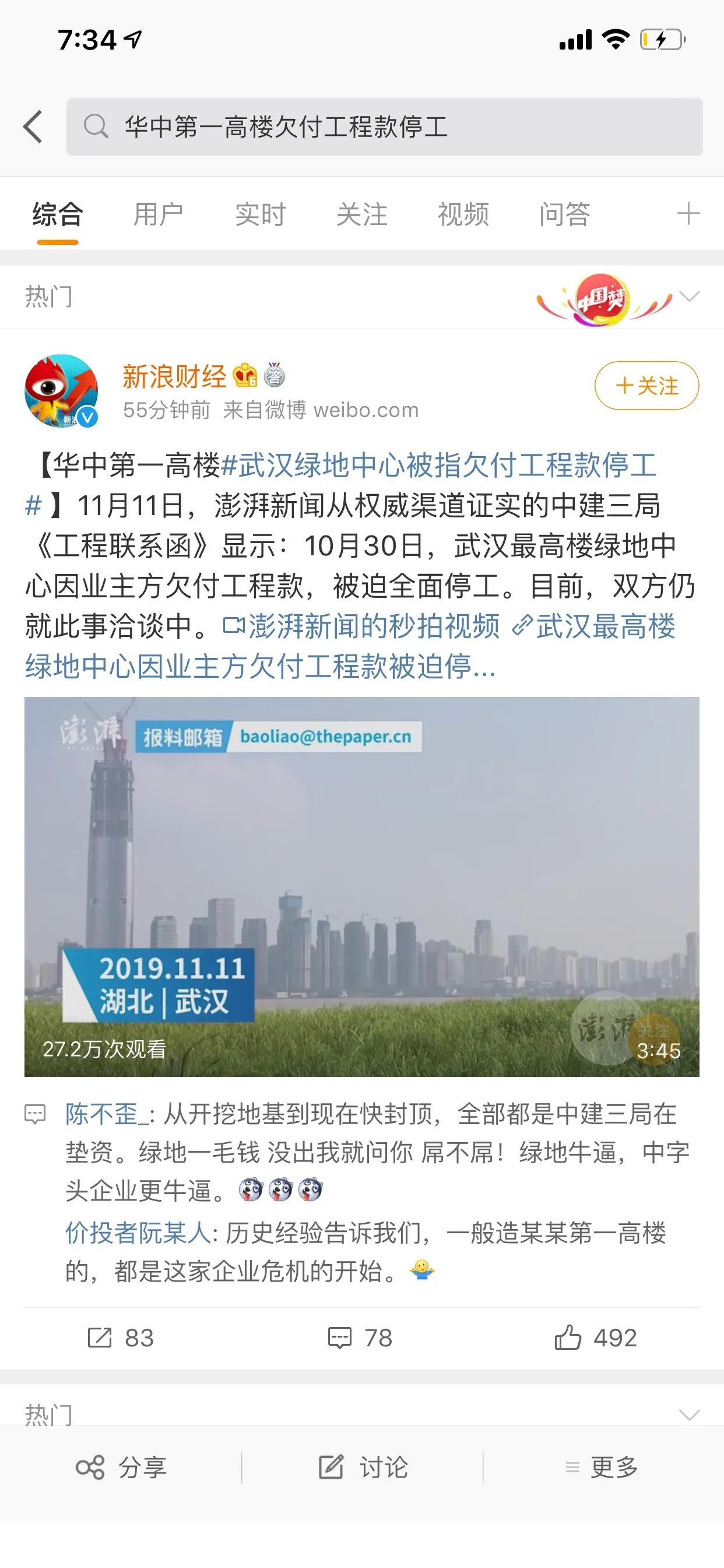 而綠地控股集團方面工作人員則回應《每日經(jīng)濟新聞》記者稱,這個文件流出之后,我們也和中建三局說了這個問題,他們會去解決文件流出的問題。至于武漢綠地中心欠款具體情況以及何時復工等相關問題,上述工作人員表示暫時不便回復,“我們會和中建三局協(xié)商處理這個問題”。